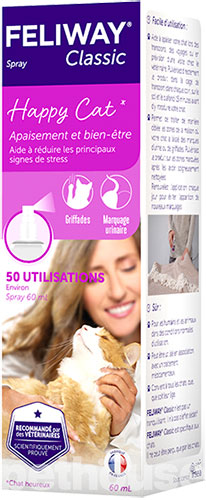 Фелівей Класік (Feliway Classic) спрей надсилає заспокійливі повідомлення котам за допомогою синтетичного аналогу F3 феромону лицьових залоз котів у його складі.