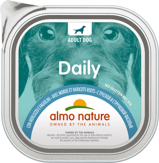 Альмо натуре дейлі меню дог лайн повнораціонний консервований корм зтріскою та зеленою квасолею 300 г