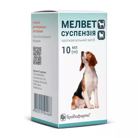 БРОВАФАРМА розширила лінійку нестероїдних протизапальних препаратів (НПЗП) для собак і котів суспензією Мелвет. Як і випущений раніше розчин для ін’єкцій, новий Мелвет створений на основі мелоксикаму і допомагає тваринам при болях, запаленнях та підвищеній температурі. Але використовувати його набагато простіше, тому що засіб призначений для перорального застосування.