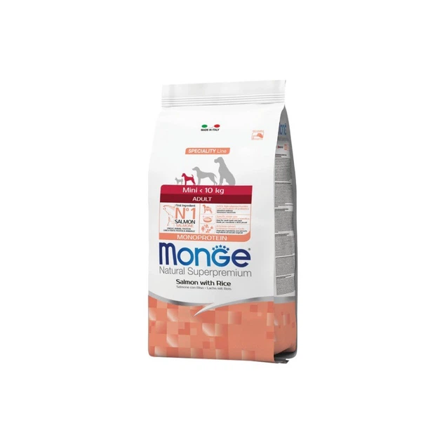 Собаки дрібних порід вимагають до себе особливого відношення, тому що у цих симпатичних малюків маленькі тоненькі кістки, які, при неправильному підборі корму, можуть стати крихкими та доставляти собаці проблеми. Також декоративні собачки дуже багато часу проводять на руках у господарів, тому шерсть у них має бути в ідеальному стані. Вибираючи високоякісний корм від відомого італійського виробника, ви даєте вашому вихованцю збалансоване здорове харчування, яке забезпечить здоров’я та відмінний зовнішній вигляд. Сухий корм з лососем та рисом смачний, ситний, збагачений усіма необхідними вітамінами та мікроелементами. Це ідеальне харчування для маленьких собак. Навіть якщо у вашого вихованця є проблеми зі шкірою або системою травлення, корм Monge допоможе стабілізувати стан тварини. У його складі є компоненти, які покращать стан мікрофлори кишківника та зроблять засвоюваність корисних речовин максимальною. Гранули оптимального розміру дуже позитивно сприймаються тваринами: собака буде їсти із задоволенням! Якісний корм покращує собаці не тільки здоров’я та зовнішній вигляд, у вашого вихованця також покращиться і настрій. Спільні прогулянки та походи в магазин проходитимуть більш активно та позитивно. Виробник використовує для виробництва своїх кормів тільки якісні продукти, оброблені за інноваційними технологіями, що дозволяє зберегти максимум корисних речовин та чудові смакові якості. Переваги та особливості: Лосось і рис є джерелами білків і вуглеводів, що легко засвоюються, тому даний раціон чудово підходить собакам з проблемами травлення і шкірними захворюваннями. Зміст X.O.S. допомагає зберегти природний баланс кишкової мікрофлори, сприяє оптимальному засвоєнню поживних речовин та підвищує імунітет. Поліненасичені жирні кислоти, якими багатий виловлений у північних морях свіжий лосось, запобігають розвитку запальних процесів і зберігають здоров’я шкіри та блиск вовни вашого вихованця. Глюкозамін, хондроїтин, кальцій та фосфор для здоров’я суглобів. Ці речовини у складі корму сприяють нормальному функціонуванню суглобів опорно-рухового апарату. Оптимальна форма гранул для зручності собак дрібних порід. Спеціально розроблені форма та розмір гранул ідеально підходять для собак дрібних порід. Позбавляють зуби від нальоту та запобігають виникнення зубного каменю. Інгредієнти: риба (34% дегідрованого та 10% свіжого лосося), рис, суха бурякова пульпа, пивні дріжджі (джерело МОС та вітаміну B12), гідролізований білок риби, риб’ячий жир (масло лосося, консервоване за допомогою натуральних антиоксидантів), карбонат кальцію (джерело хондроїтину сульфату), гідролізовані ракоподібні (джерело глюкозаміну), метилсульфонілметан, КОС (ксилоолігосахариди 3 г/кг), гідролізовані дріжджі (МОС), Юкка Шідігера, спіруліна, корінь ехінацеї, орега. Гарантований аналіз: сирий білок 25,00%, сирі олії та жири 14,00%, сира клітковина 2,50%, сира зола 6,50%, кальцій 1,20%, фосфор 0,90%, омега-6 жирні кислоти 4,00 %, омега-3, жирні кислоти 0,30%. Добавки харчові/кг: вітамін А 24 000 МО, вітамін D3 1700 МО, вітамін Е 190 мг, вітамін В1 12 мг, вітамін В2 15 мг, вітамін В6 7 мг, вітамін В12 150 мг, біотин 20 мг, нікотинова кислота 30 мг, вітамін С 20 пантотенова кислота 18 мг, фолієва кислота 1,70 мг, холіну хлорид 2500 мг, інозитол 3,60 мг, Е5 сульфат марганцю моногідрат 32 мг, Е6 оксид цинку 150 мг, Е4 с