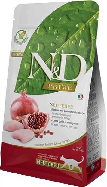N&D GRAIN FREE PRIME CAT CHICKEN & POMEGRANATE NEUTERED ADULT — повнораціонний беззерновий корм на курці для дорослих стерилізованих котів і кастрованих котів.