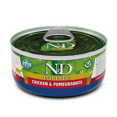 Беззерновий консервований корм з куркою та гранатом для котів Фарміна N&D Prime GF Chicken & Pomegranate Adult Cat
