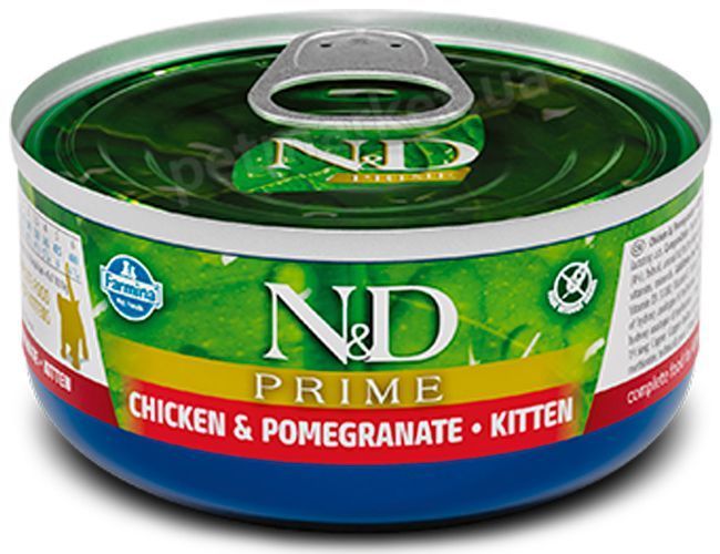 Farmina N&D Prime Kitten Курица/гранат - полнорационный беззерновой влажный корм с нежным вкусным мясом курицы и витаминным гранатом для котят возрастом от 4 недель до 1 года, беременных и кормящих кошек.