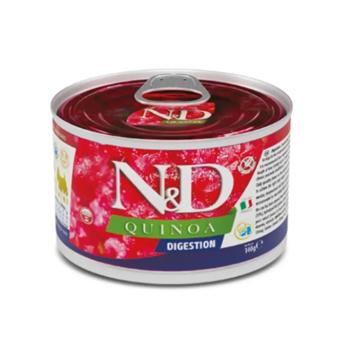 Farmina ND Quinoa Digestion — это полноценный диетический корм для взрослых собак мелких пород. Его специальная формула создана для животных с чувствительным пищеварением и экзокринной недостаточностью поджелудочной железы. Благодаря высокой усвояемости и натуральному составу корм помогает поддерживать работу пищеварительной системы и дарит вашему питомцу лёгкость и комфорт после каждого приёма пищи.
