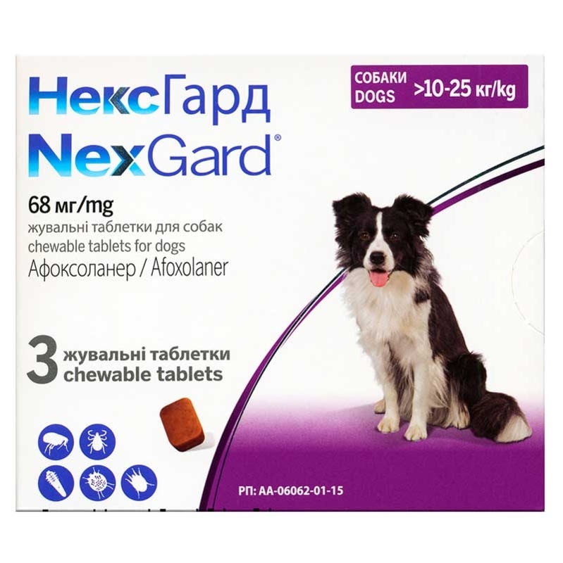 Інструкція по застосуванню препарату Nexgard (Нексгард) для лікування і профілактики паразитарних захворювань у собак: