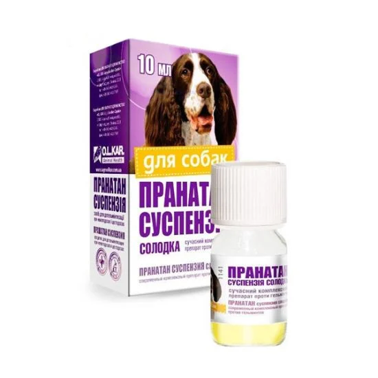 Пранатан-суспензія солодка для собак, 10 мл – засіб для дегельмінтизації собак при нематодозах та цестодозах.