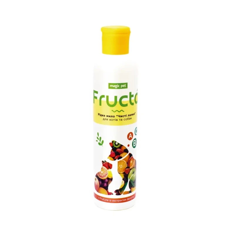 Рідке мило серії FruitLine для собак та кішок. Забезпечить дбайливий догляд за шкірою та лапами вашого улюбленця. Комбінація високоефективних поверхнево активних речовин, що містять вітамін С, фруктові екстракти барбадоської вишні, ананаса, авокадо, апельсина та Алантоїн, ніжно очищає, знімає подразнення, пом’якшує шкіру подушечок лап, стимулює регенерацію тканин і >