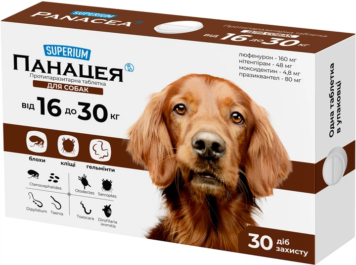 Superium Панацея протипаразитарна таблетка для собак вагою від 16 до 30 кг.