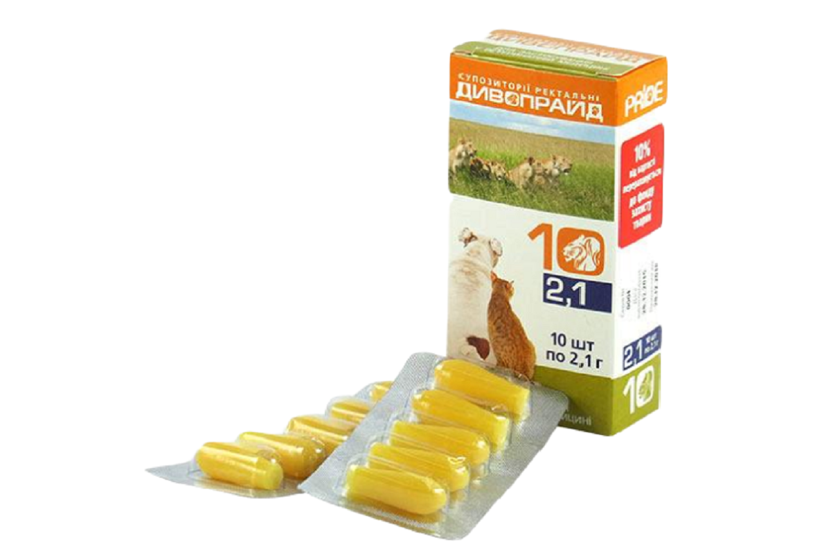 Ректальні супозиторії Дивопрайд - комплексний ветеринарний препарат, терапевтична дія якого обумовлена фармакологічними властивостями діючих речовин, що входять до його складу.