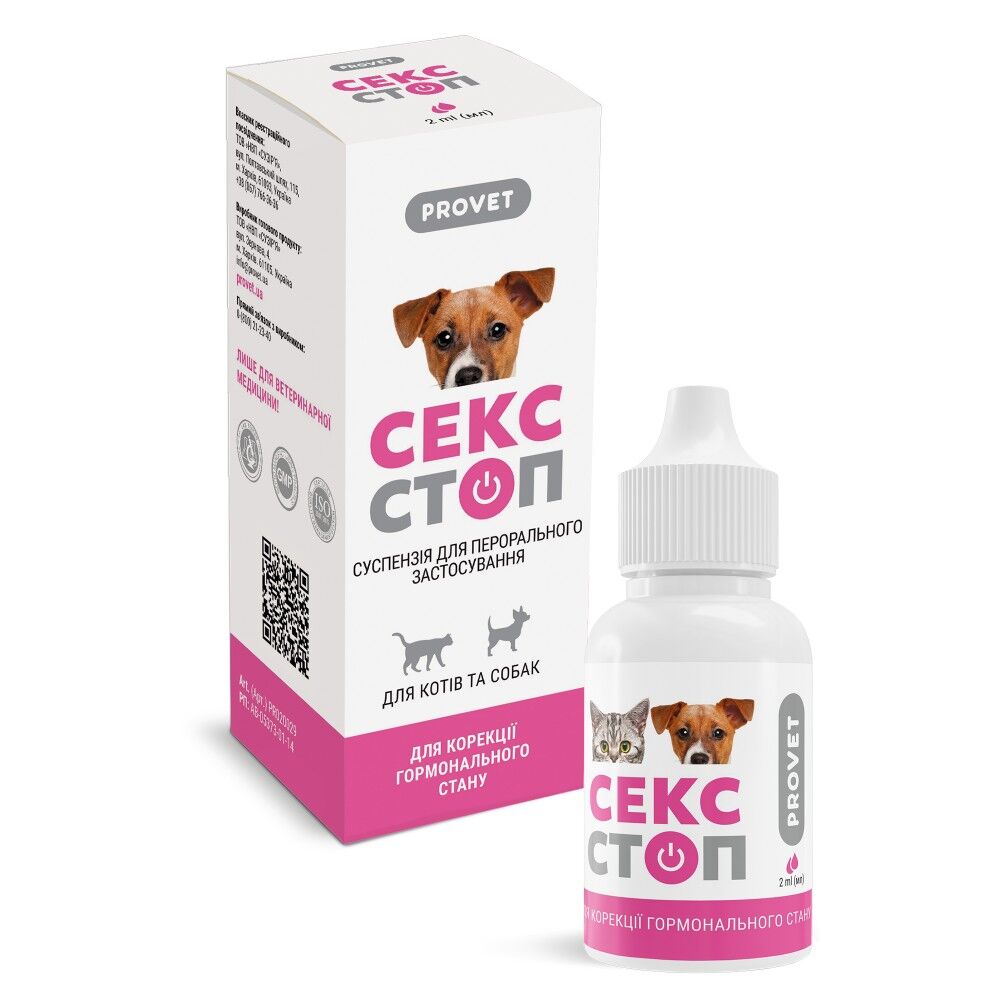 Спосіб застосування: Перед використанням флакон із суспензією збовтати. «Сексстоп» вводять перорально з кормом або примусово на корінь язика в наступних дозах: Котам: При появі у котів ознак статевого збудження для заспокоєння — 5 крапель на 5 кг маси тіла тварини щодня протягом 2 тижнів, але не довше.