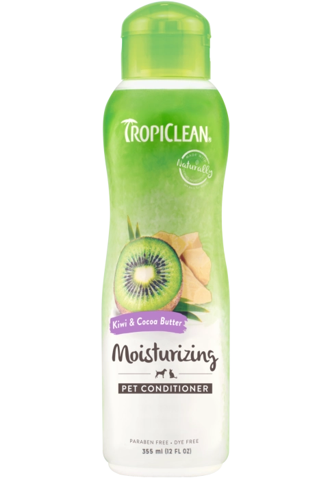 Зволожуючий кондиціонер для собак та кішок TropiClean Kiwi&Cocoa Butter ефективно заспокоює та кондиціонує, допомагаючи розплутати шерсть та зволожити шкіру. Має приємний солодкий тропічний аромат ківі і какао-олії. Без мила, парабенів та барвників. Виготовлений із інгредієнтів природного походження. Безпечний при щоденному застосуванні собак, цуценят, котів і кошенят віком від 12 тижнів.