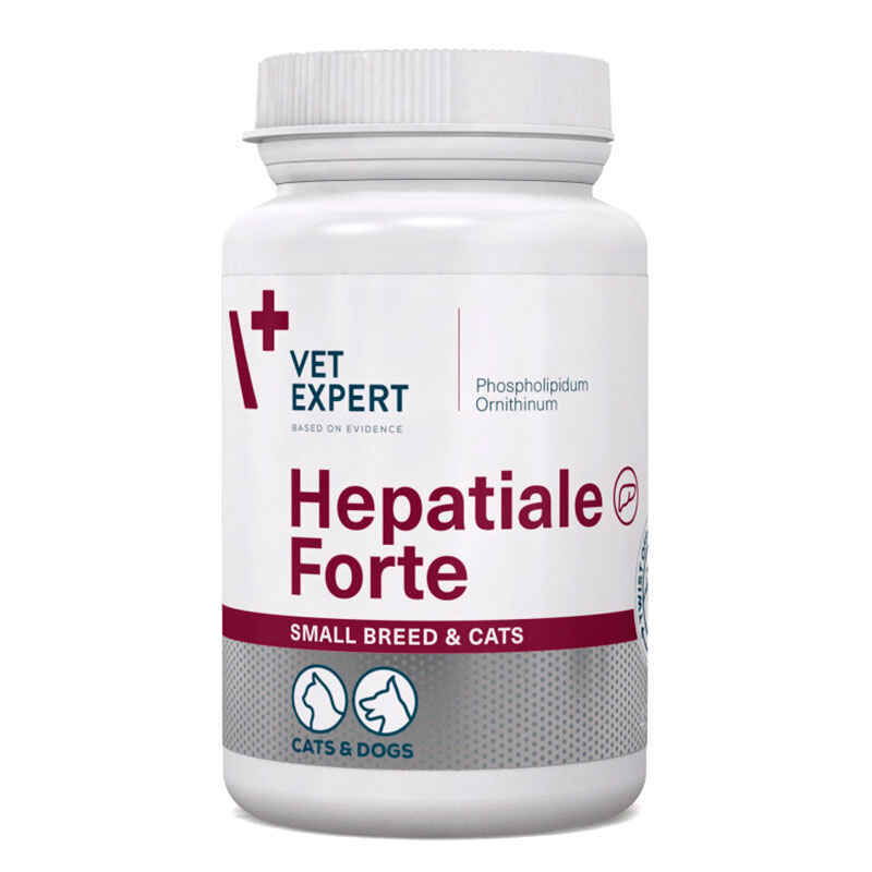 Vet Expert Hepatiale Forte Small Breed&cats (Вет Експерт Гепатіале Форте для котів і собак малих порід) – харчова добавка для котів і собак малих порід у вигляді капсул, рекомендована для підтримання функцій печінки, при підозрі на її розлади, а також у разі хронічної печінкової недостатності. Відновлює та захищає клітини печінки, прискорює їхню регенерацію та одужання тканини, підтримує метаболізм білків у печінці, сприяє засвоєнню вітамінів і регуляції циклу обміну сечовини.