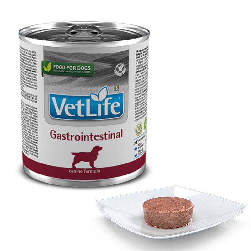 Вологий повнораціонний корм-дієта Gastrointestinal створений італійським брендом Farmina аби задовольнити харчові потреби дорослих собак з порушенням роботи травної системи. Вологе харчування дозволить швидко наситити організм вихованця важливими вітамінами та мінералами, при цьому не навантажуючи органи травлення тварини. Дієтичний корм також приписують собакам з порушенням роботи підшлункової залози, а також він чудово підходить для тварин, що перенесли операції на органах травлення.