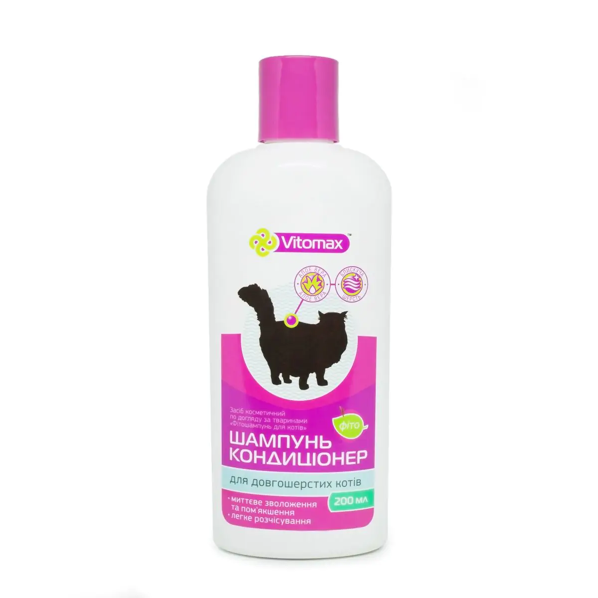 Натуральний шампунь для кішок на основі екстрактів рослин, корисних для вовни та шкіри. Серія спеціально розроблена для довгошерстих кішок, тому що їм потрібен особливий догляд. Фітошампунь-кондиціонер від Vitomax – це натуральний засіб, який чудово очищає довгу вовну та легко змивається.