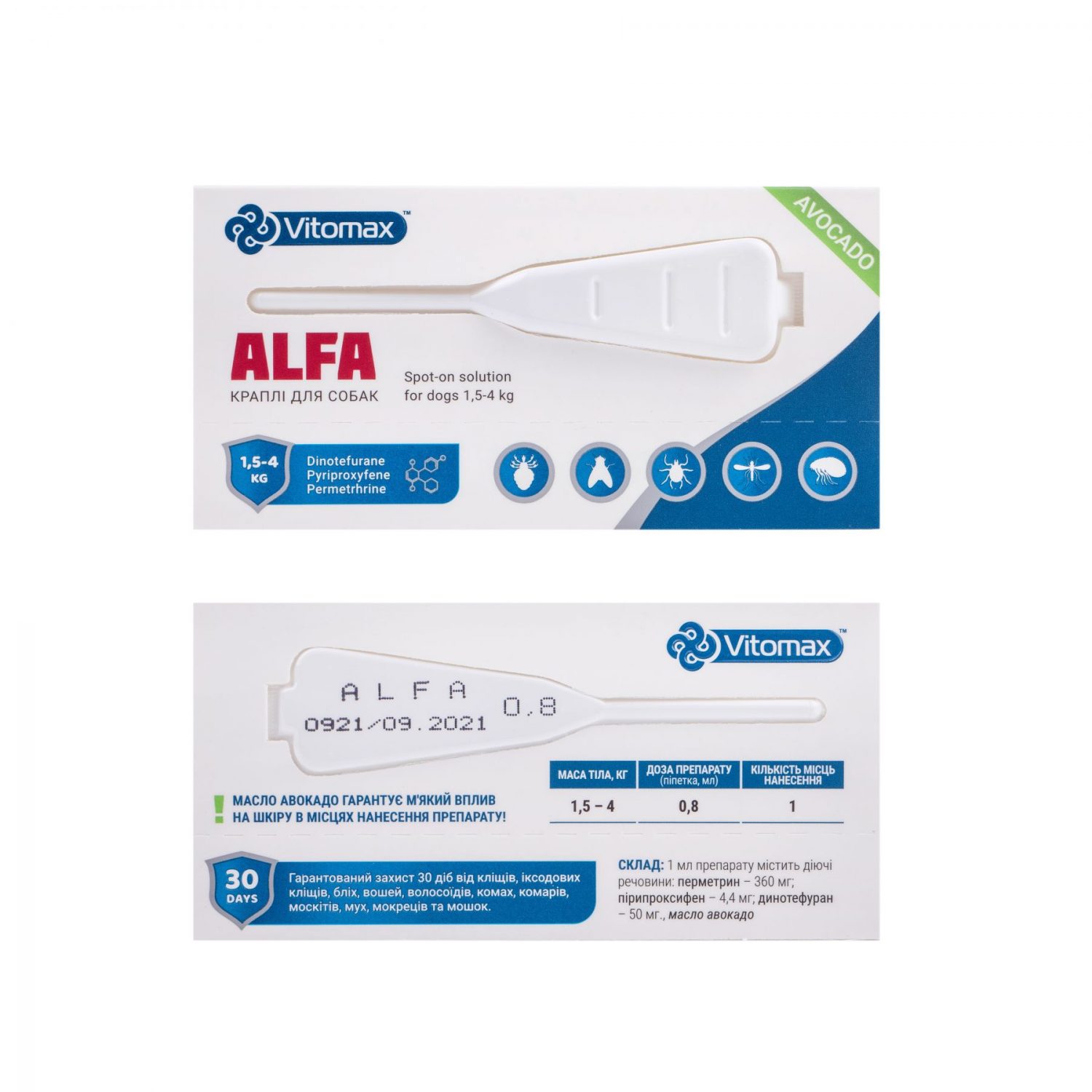 Краплі ALFA надають тривалу інсектоакарицидну та репелентну дію, створюючи захисний бар’єр, при контакті з яким шкідливі ектопаразити гинуть, не встигаючи вкусити тварину.
