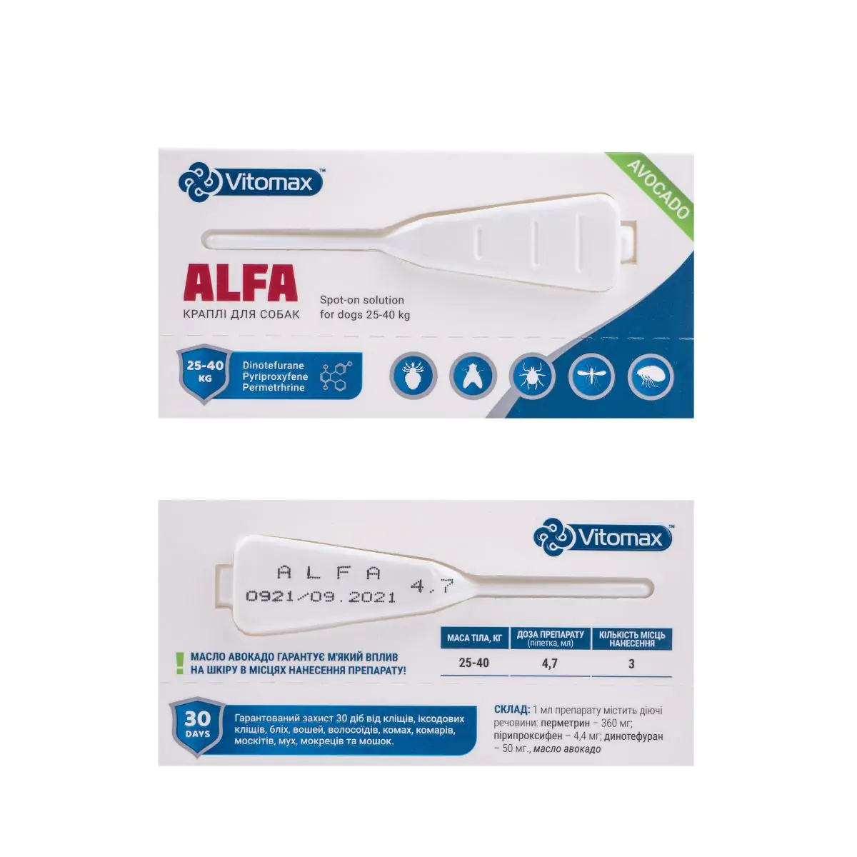 Протипаразитарні краплі Vitomax Alfa від бліх, кліщів, комарів для cобак, 25-40 кг (ціна за 1 шт)