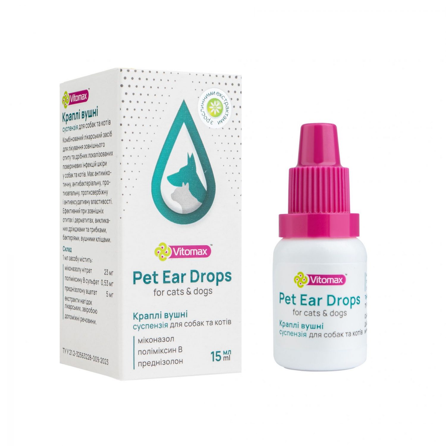 Комбінований лікарський засіб для лікування зовнішнього отиту та дрібних локалізованих поверхневих інфекцій шкіри у собак i котів. Maє антимікотичну, антибактеріальну, протизапальну, протисвербіжну i антиексудативну властивості. Ефективний при зовнішніх отитах i дерматитах, викликаних дріжджами та грибками, бактеріями, вушними кліщами.