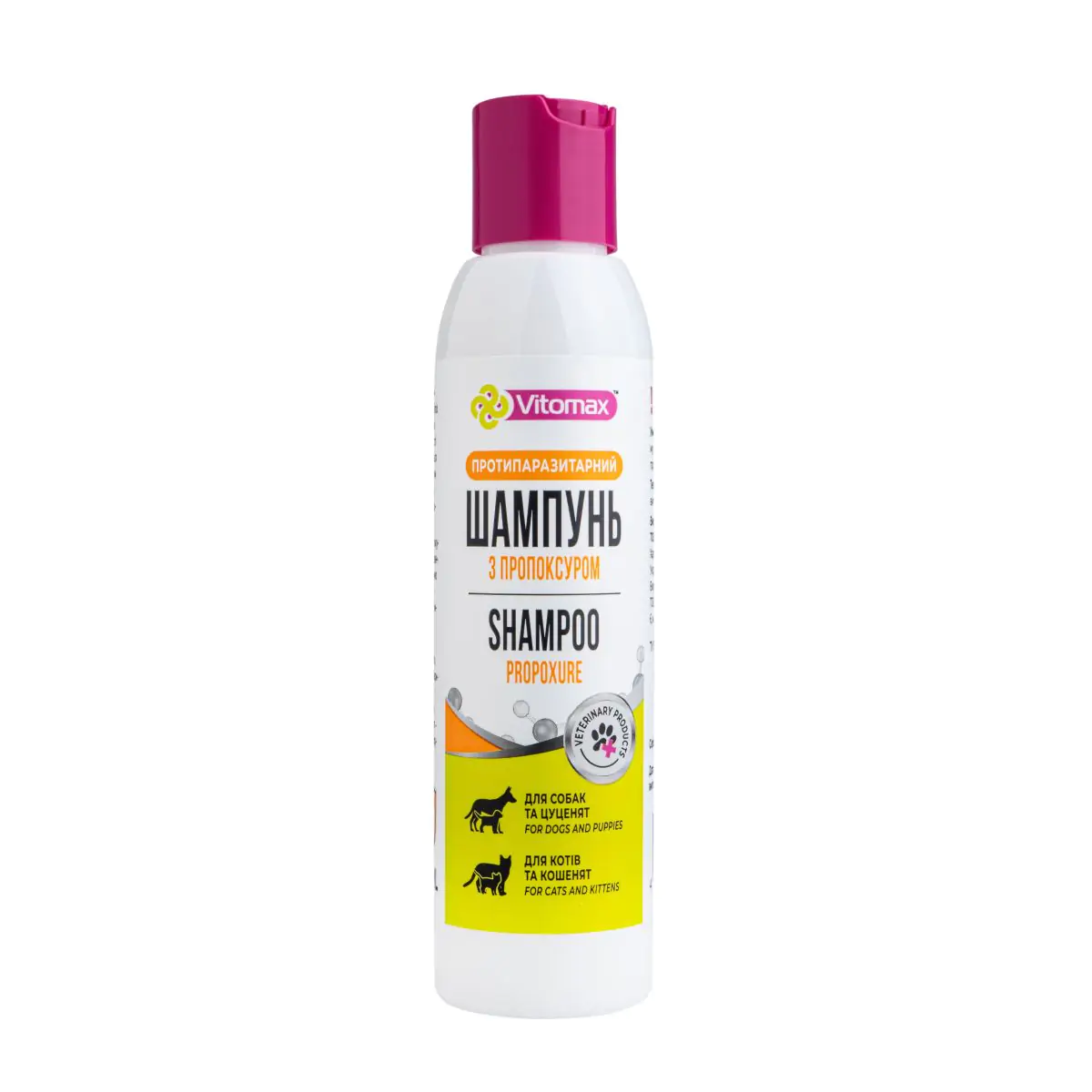 Шампунь протипаразитарний з пропоксуром знищує бліх і кліщів та їх личинки. Забезпечує щадний догляд і очищення шерсті тварин.