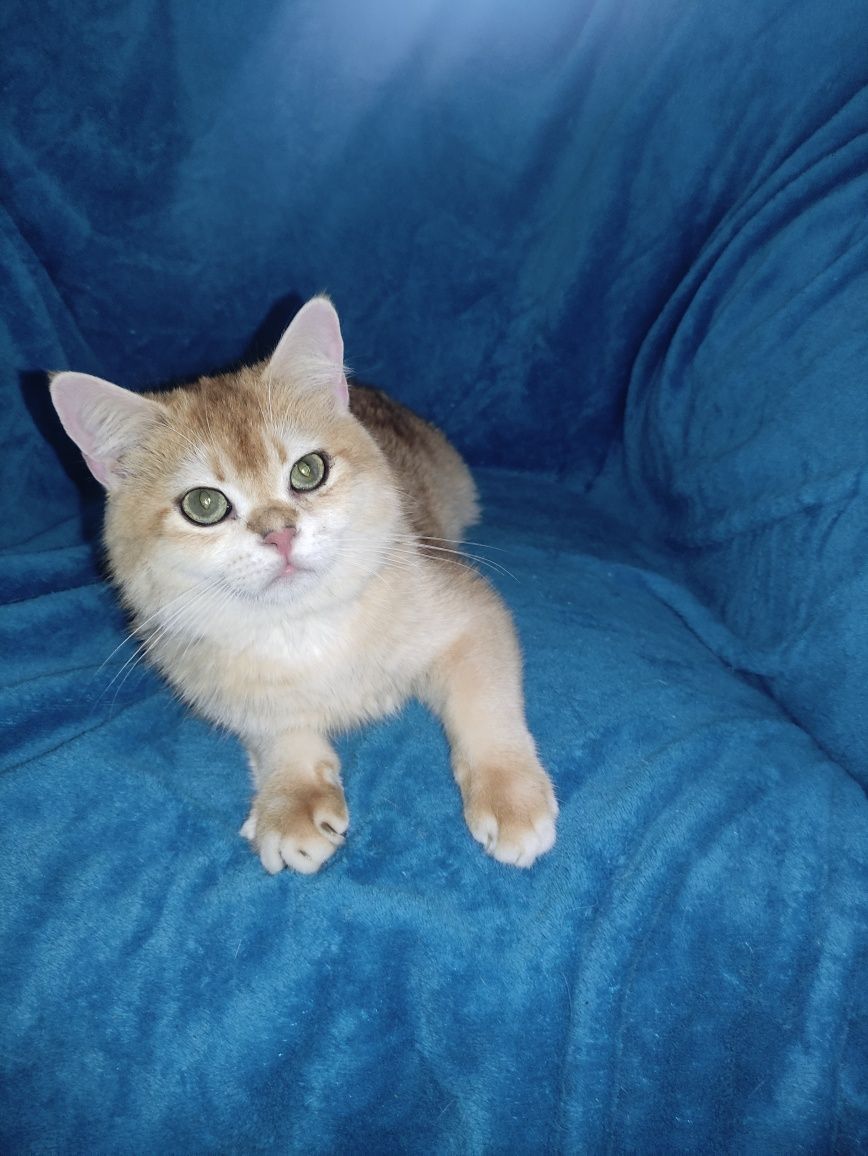 Пропонується к продажу чистокровний британський хлопчик золота шиншила Арні . Від двух клубних батьків. Хлопчик привіт по віку. С дуже ласкавим характером підходить для маленьких дітей. Кошачему етикету привчений ,ігривий , маленький моторчик . Е доставка в інші міста. Всі питання по телефону або смс. По бажанню можно зробити родовід