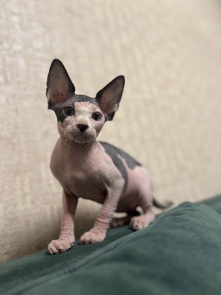 Продається гарна дівчинка Канадського Сфінкса! Це грайливе та надзвичайно миле кошеня стане ідеальним компаньйоном.