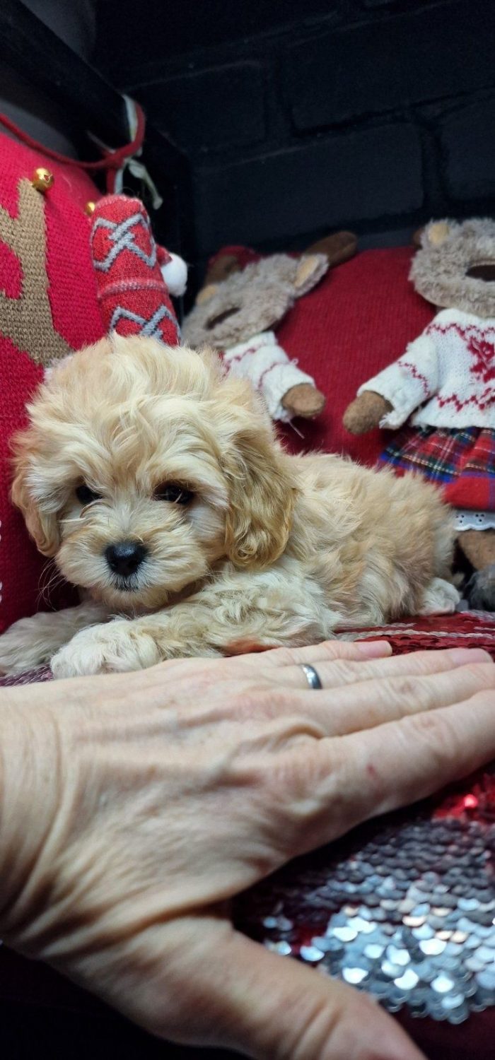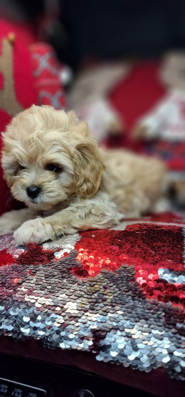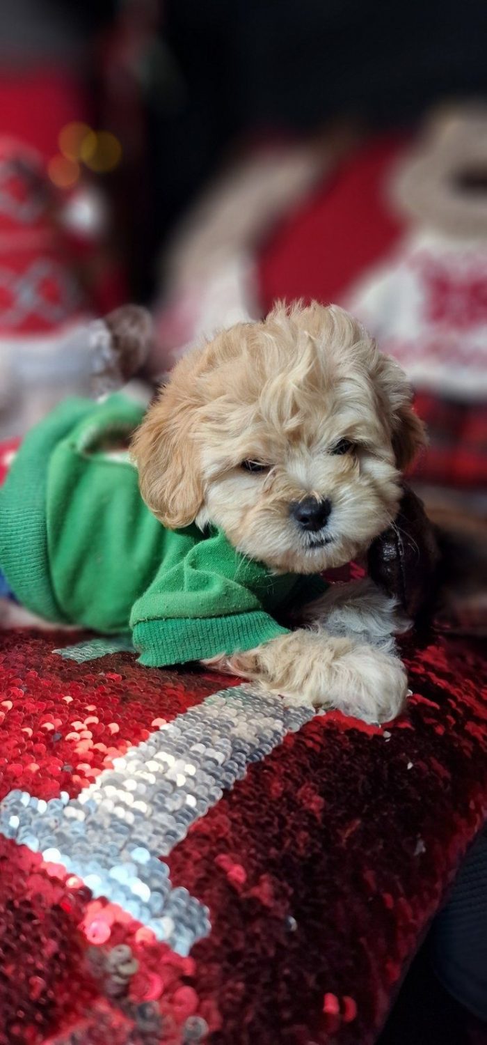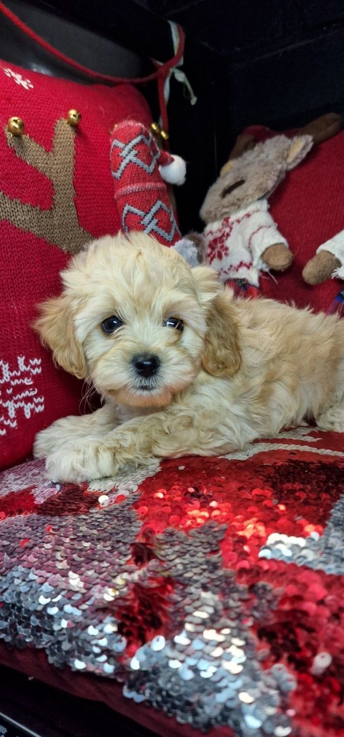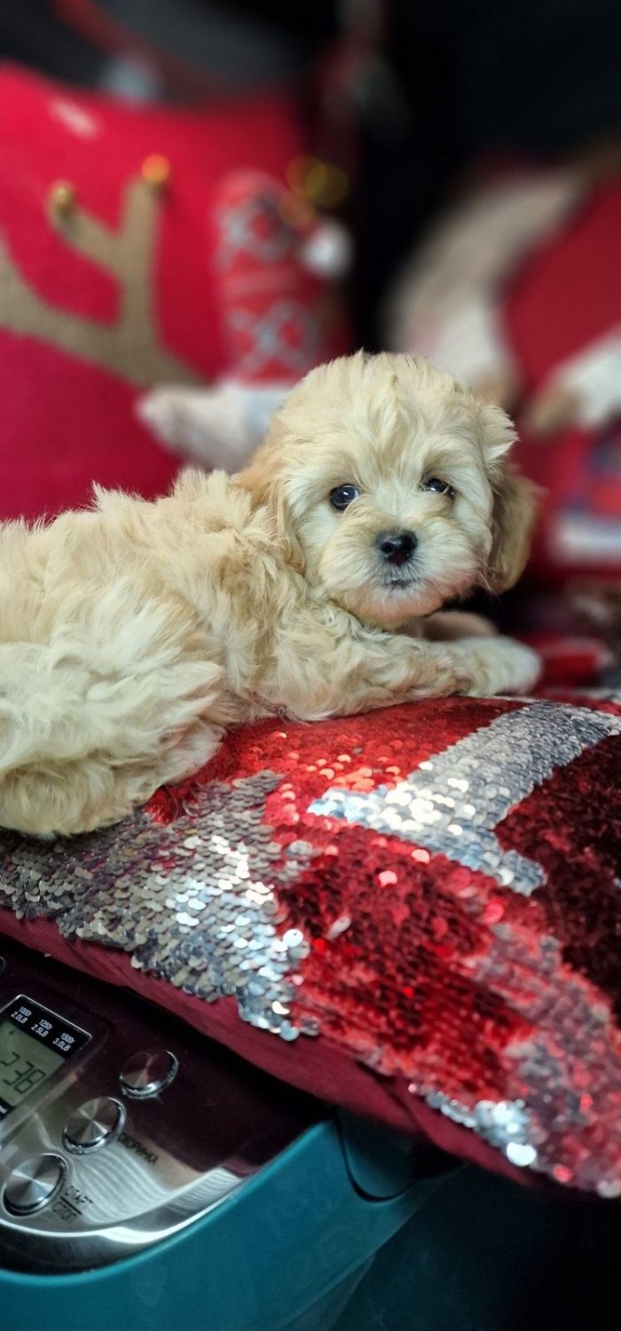 Кумедний хлопчик мальтіпу , бебіфейс в окрасі карамель