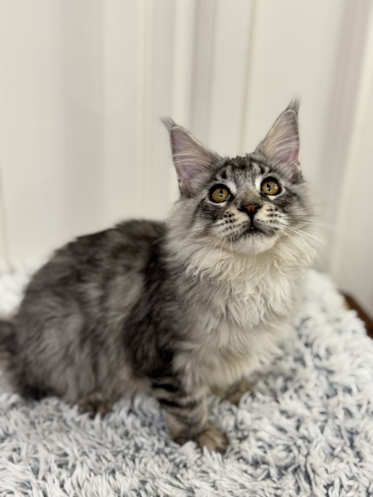 Пропонується шикарне кошеня породи Мейн-кун з ефектним сріблястим забарвленням.
