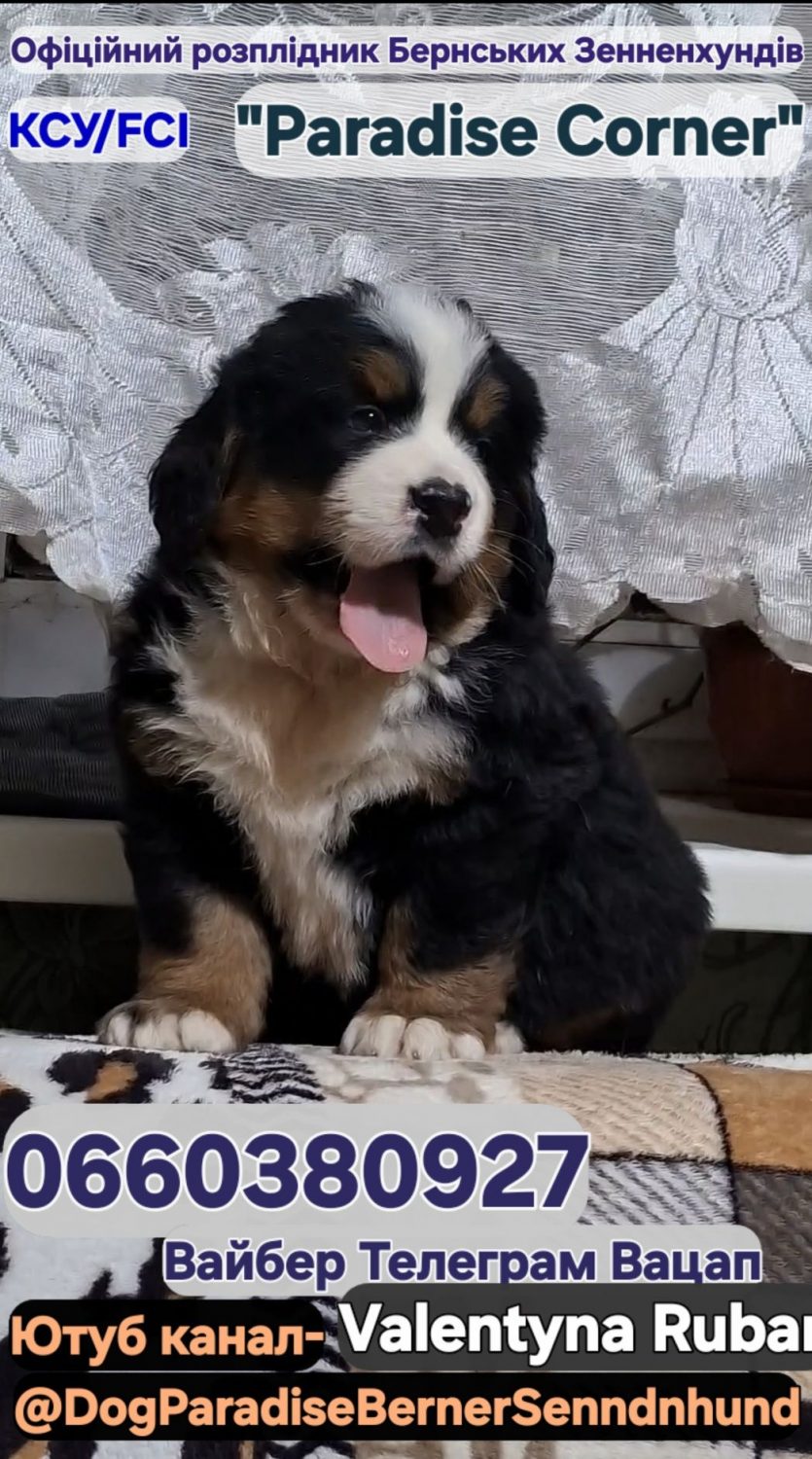 Пропонуються до продажу розкішні цуценята породи Бернський Зенненхунд (Berner Sennenhund). Ці пухнасті малюки з насиченим триколором та блискучою шерстю вже повністю готові стати частиною вашої родини. Не баріться, адже діти мріють зустріти свята у власному домі!
