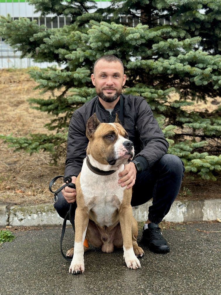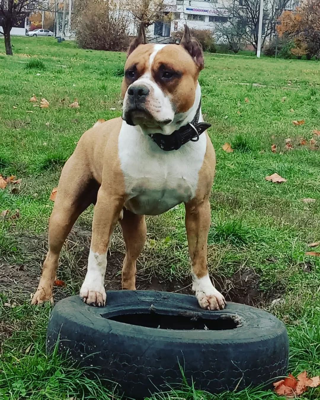 Пропонується для в’язки кобель породи Американський Стаффордширський тер’єр.